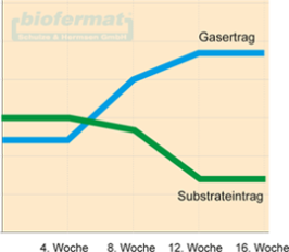 Die speziellen Nährböden im biofermat Granulat bewirken einen intensiveren Abbau der zugeführten organischen Substanz, durch die es entweder möglich ist den Input zu verringern, oder aber bei gleichem Input den Gasertrag zu erhöhen. Die angebundenen Tonmineralien sorgen für eine vergrößerte Oberfläche und führen dem Fermenter Mikronährstoffe zu.